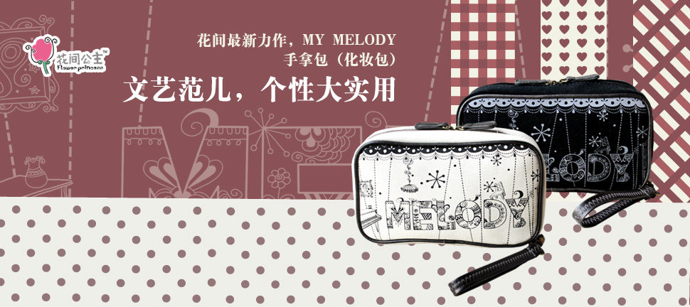 在工作和生活之间,你是否缺少一款既文艺又小清新的收纳包(化妆包),花间公主MyMelody系列恰恰就是一款属于拥有独有味道又凸显自我个性实用的包包,此系列设计者花间资深设计师Maggie_Tong采用一个充满着想象力的“跳跃的音符”作为创作主题,让人在浮想联翩!