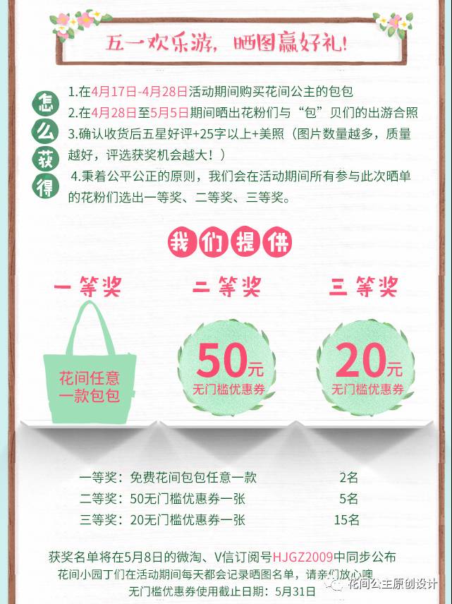 1:在4月17日-4月28日活动期间购买花间公主的包包