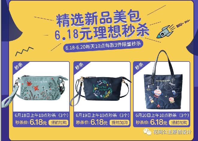 要记得,6.18--6.20每天10点,三款每款3件限量整点秒杀哦!