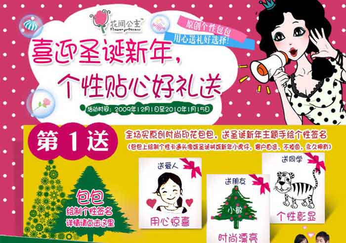 第一送:全场买原创时尚印花包包,送圣诞新年主题手绘个性签名