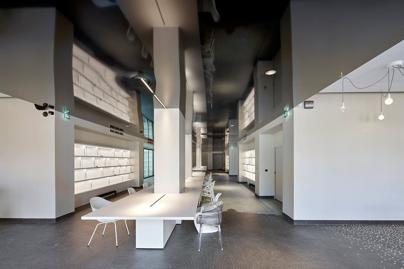 整个平面设计中心,共有两层。除了 1000 平米的展览空间外,还有展示印刷技术创新的工作坊,一间书店,一间咖啡厅以及三间训练室。